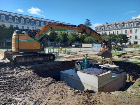 Nos équipes intègrent ces dispositifs dès la phase de conception urbaine, en recherchant à la fois la performance hydraulique, la sécurité sanitaire et l’intégration architecturale. Le résultat : des ouvrages efficaces, faciles à entretenir et parfaitement intégrés à leur environnement. Deux exemples pour mise en œuvre pour Grenoble :