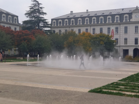 - Sur l’esplanade Alain Le Ray, nous avons modernisé une fontaine miroir d’eau en circuit fermé. L’installation comprend un traitement complet de l’eau (filtration, pH, chlore), un réseau hydraulique optimisé et un système de brumisation complémentaire intégré aux rails de la fontaine sèche. Ce dispositif offre un confort thermique immédiat sans recours à la climatisation, tout en valorisant le paysage urbain.